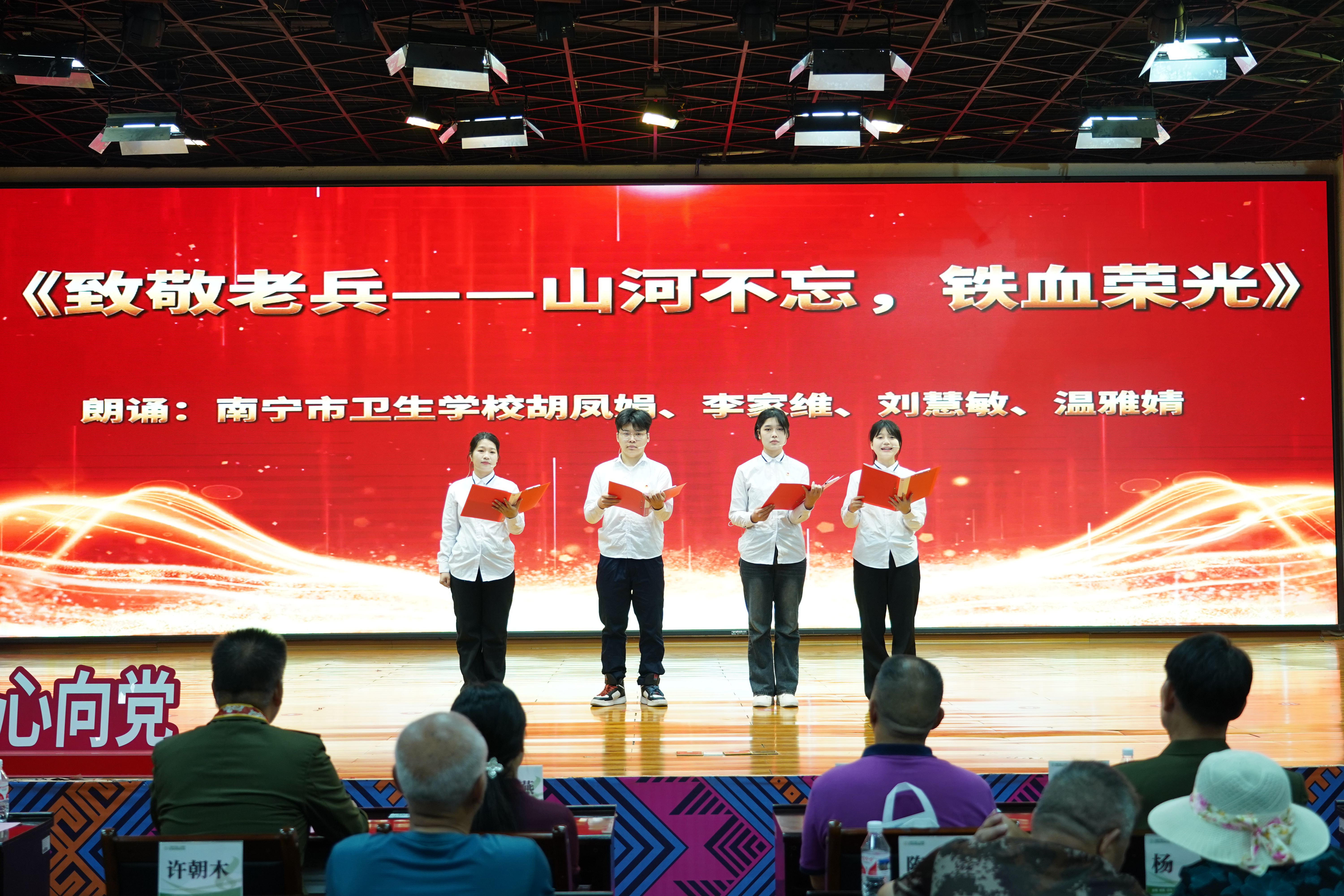 学校团员青年现场表演了诗朗诵《致敬老兵——山河不忘,铁血荣光》和舞蹈《繁花》等文艺节目,向在场的退役军人们表达崇敬之情。