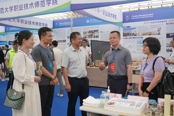 中共南宁市委教育工作委员会委员、南宁市教育局党组成员、副局长、三级调研员宁敏升到学校展位指导工作。他强调,举办职业教育活动周是职业院校宣传技能人才培养的重要措施,是推动职业教育高质量发展的重要途径,南宁市卫生学校精心组织了本次职业教育活动周的技能展示和文艺汇演,为社会了解首府职业教育成果提供了有效途径。