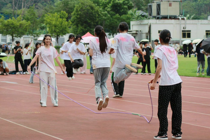 活动突破传统心理健康教育模式,以“体验式+场景化”增强参与感,8个打卡点以“集印花”形式串联,将“压力释放”转化为“闯关成就”,引导学生在完成任务中建立自信。如鼓动青春:通过小组协作颠球,培养小组团结协作精神;心理知识问答:“如何缓解考前焦虑”“朋友闹矛盾怎么办”等贴近生活的题目,让同学们在讨论中收获实用心理小技巧;合照打卡:大家在心理健康月主题展板前摆出创意姿势,留下笑容,定格美好瞬间等。“彩虹”漫天飞,白衣服秒变“调色盘”,大家笑着互相“染色”,整个场地变成欢乐的彩色海洋。