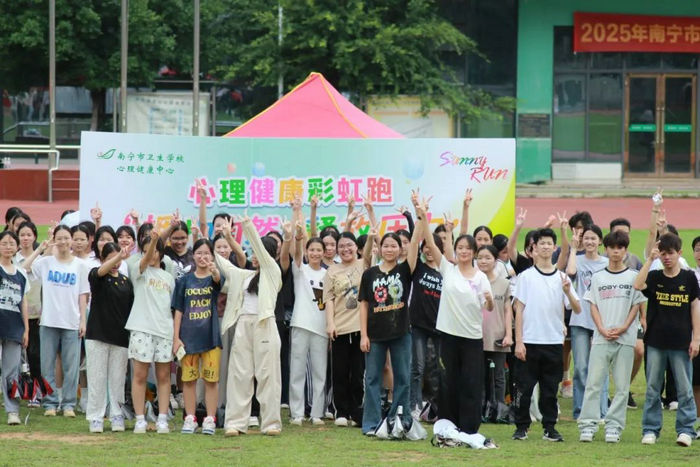 5月20日下午,为学生打造沉浸式心理减压场景,推动校园心理建设走深走实,南宁市卫生学校“拥抱自然 释放压力 一起向未来”心理健康彩虹跑在相思湖校区田径场开跑!这场充满欢笑与活力的奔跑,正式拉开学校2025年心理健康月的序幕,约一千名学生以奔跑姿态解锁“心”起点。
