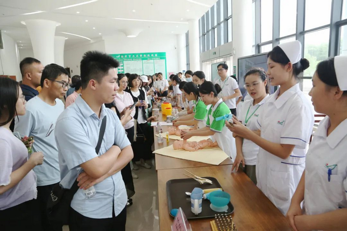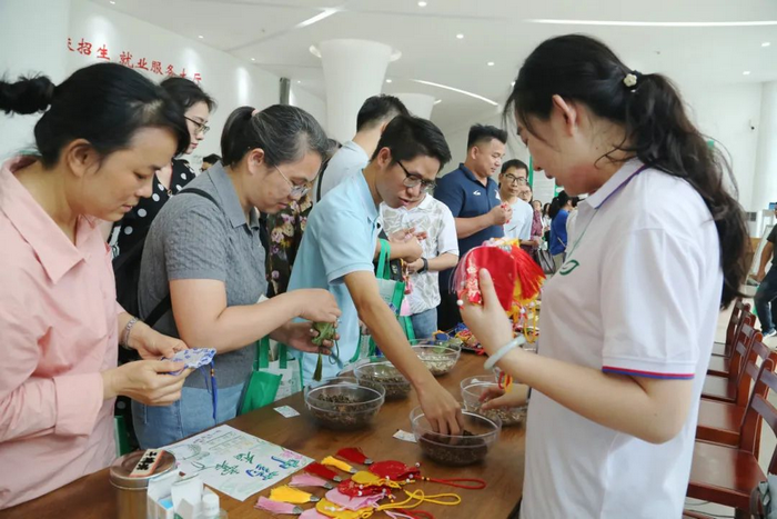 心肺复苏、适老化餐具和手指康复锻炼器械介绍、婴儿抚触、固定义齿制作、ABO和Rh血型检测、中药香囊制作等专业技能在招生大厅精彩展示,嘉宾们纷纷亲身体验,对学生的技能水平和学校的人才培养质量给予了高度评价。