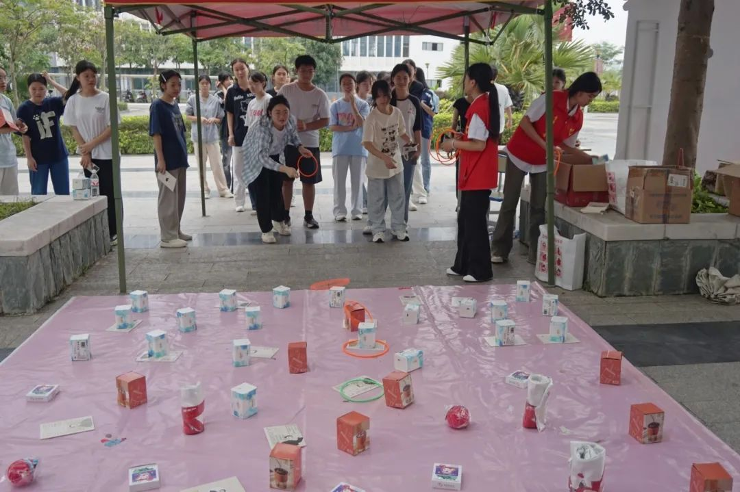 “爱心传递”小游戏寓教于乐,传递互助精神;“‘圈’住爱心”游戏区则增添了轻松氛围。