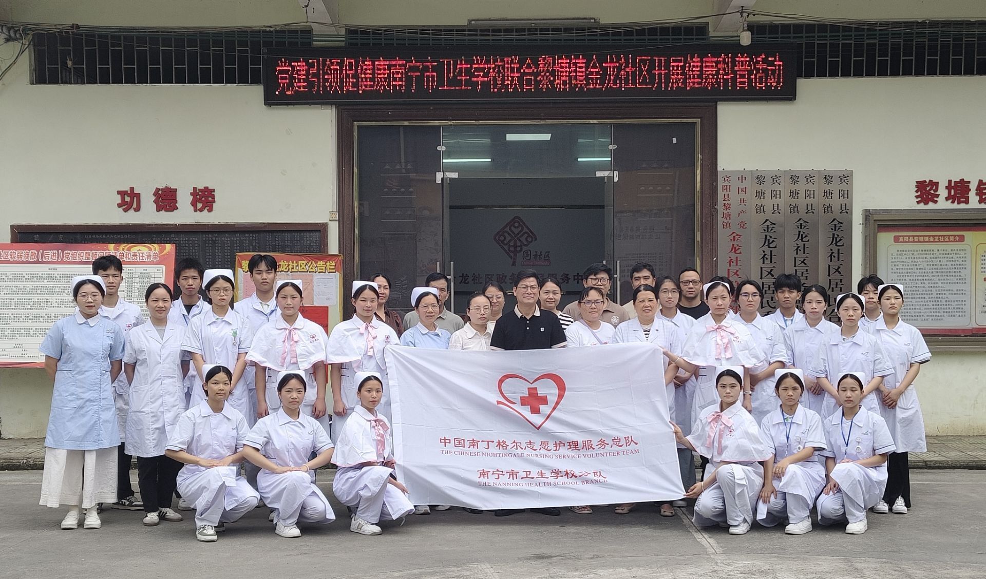 5月27日下午,南宁市卫生学校黎塘校区南丁格尔志愿服务队走进金龙社区,以“职业教育 + 志愿服务”双主线,带来了一场有温度、有深度的社区志愿服务。