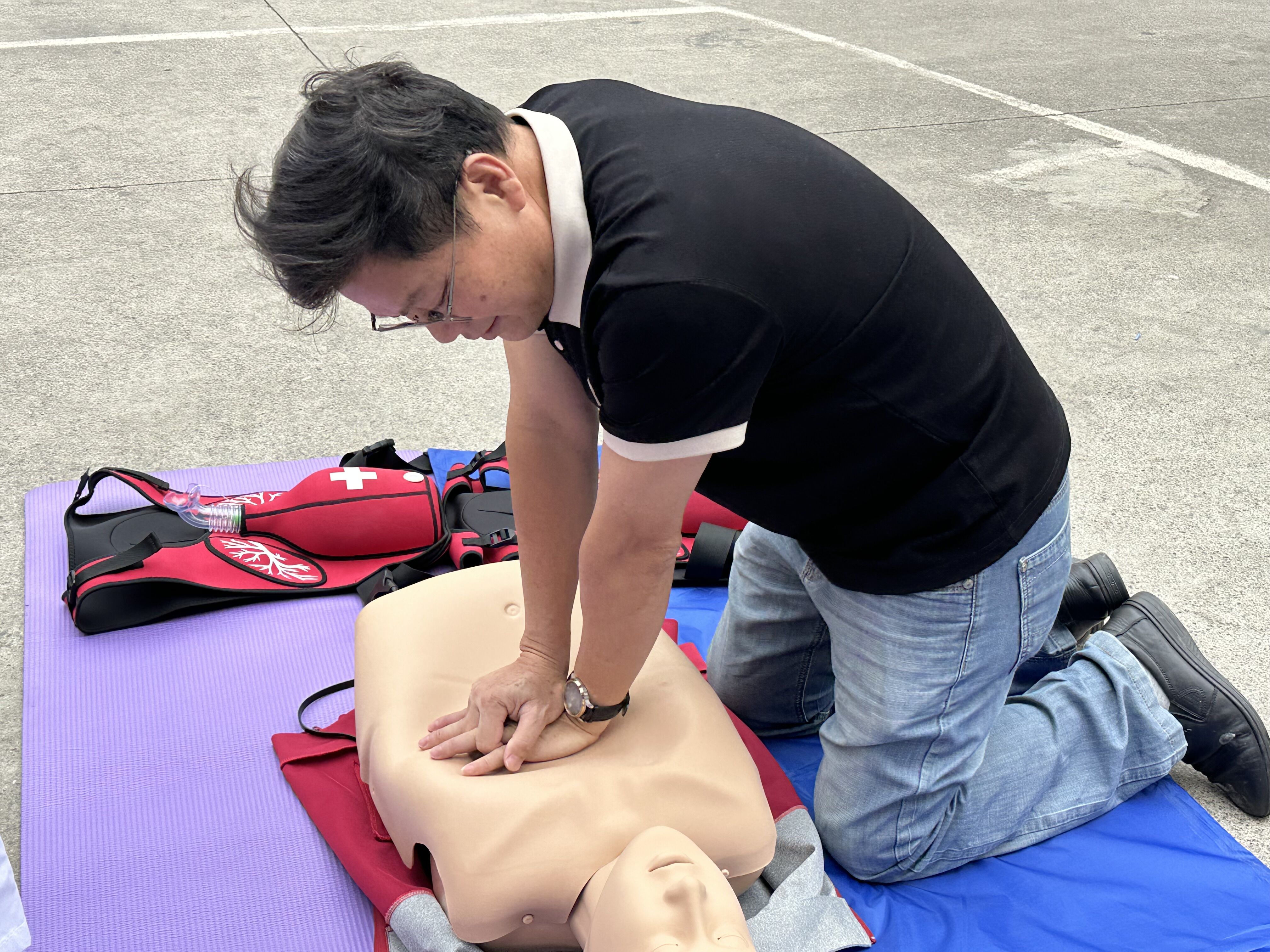 “双手交叉、掌根重叠,垂直向下按压!”护理专业学生在心肺复苏术(CPR)演示区化身“急救导师”,用模拟人现场演示急救流程。在海姆立克急救法教学区,居民们纷纷掏出手机拍摄教学视频,并表示,“学会这个,以后孩子吃东西卡住就不怕了!”