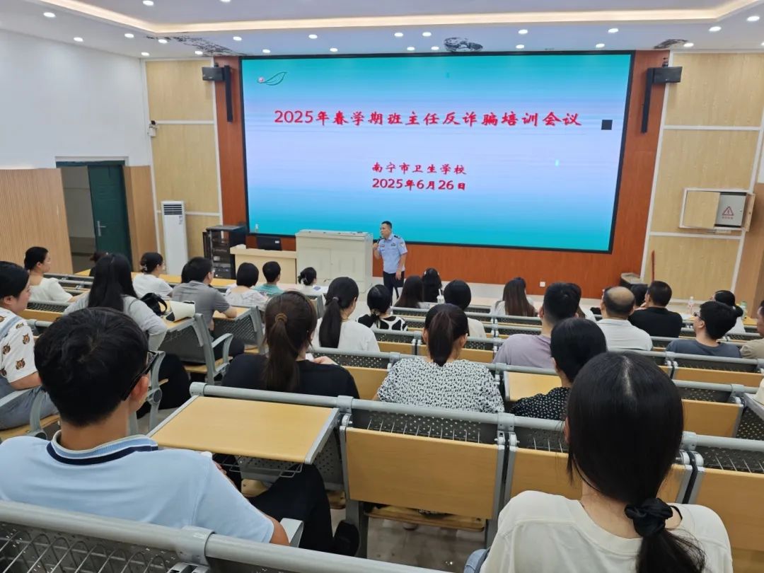 南宁市卫生学校针对近期电信网络诈骗频发态势,联合辖区派出所开展专题培训、警示教育、警校联动和家校协同等系列反诈宣传活动,切实提升师生防范意识,全力构建平安校园。