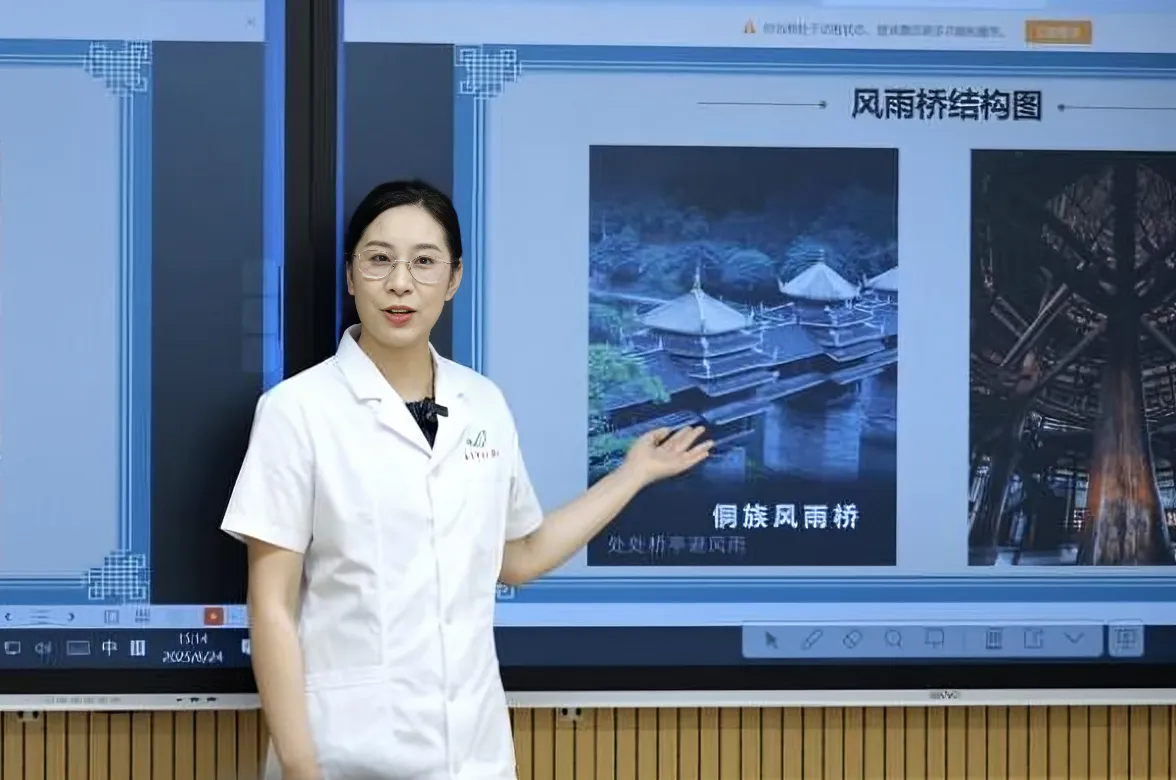 在晶钻齿科产业学院实训中,王瑛瑛借助3D建模软件,将侗族风雨桥的榫卯结构与义齿支架连接点的精准计算相联系,强调精准性在口腔义齿发挥功能中作用,并进行分组实训。第一组从风雨桥的受力分析和桥面纹理设计中汲取灵感,探讨如何优化义齿支架。第二组则聚焦于卡环设计,从壮锦边缘锁边工艺的灵活性和稳固性出发,思考如何改进卡环以适应不同患者需求。学生们分工合作,有的查找资料,有的进行软件模拟,还有的动手尝试改变卡环的厚度和宽度,现场充满了创新与探索的气息。