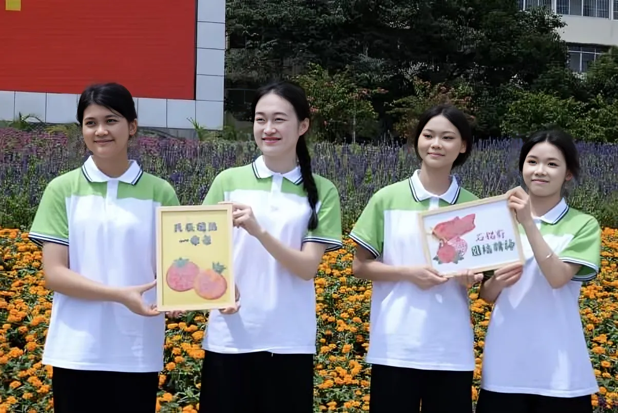 经过实操,王瑛瑛老师带着学生们来到了承载着厚重民族团结印记的南宁市民族广场,开展社会实践。首先,通过分享学校义诊队为壮族阿婆制作带有绣球纹样义齿保管盒的案例,让学生们深刻体会到义齿修复工作不仅是修复牙齿,更是连接情感的桥梁,就像各民族之间的相互牵挂与关爱。接着,学生们以石榴为主题,现场制作手工造型作品并进行展示。全体学生纷纷表示,他们将以壮锦经纬之匠心,铸义齿修复之精准;以石榴抱团之同心,护民族口腔之健康的决心。