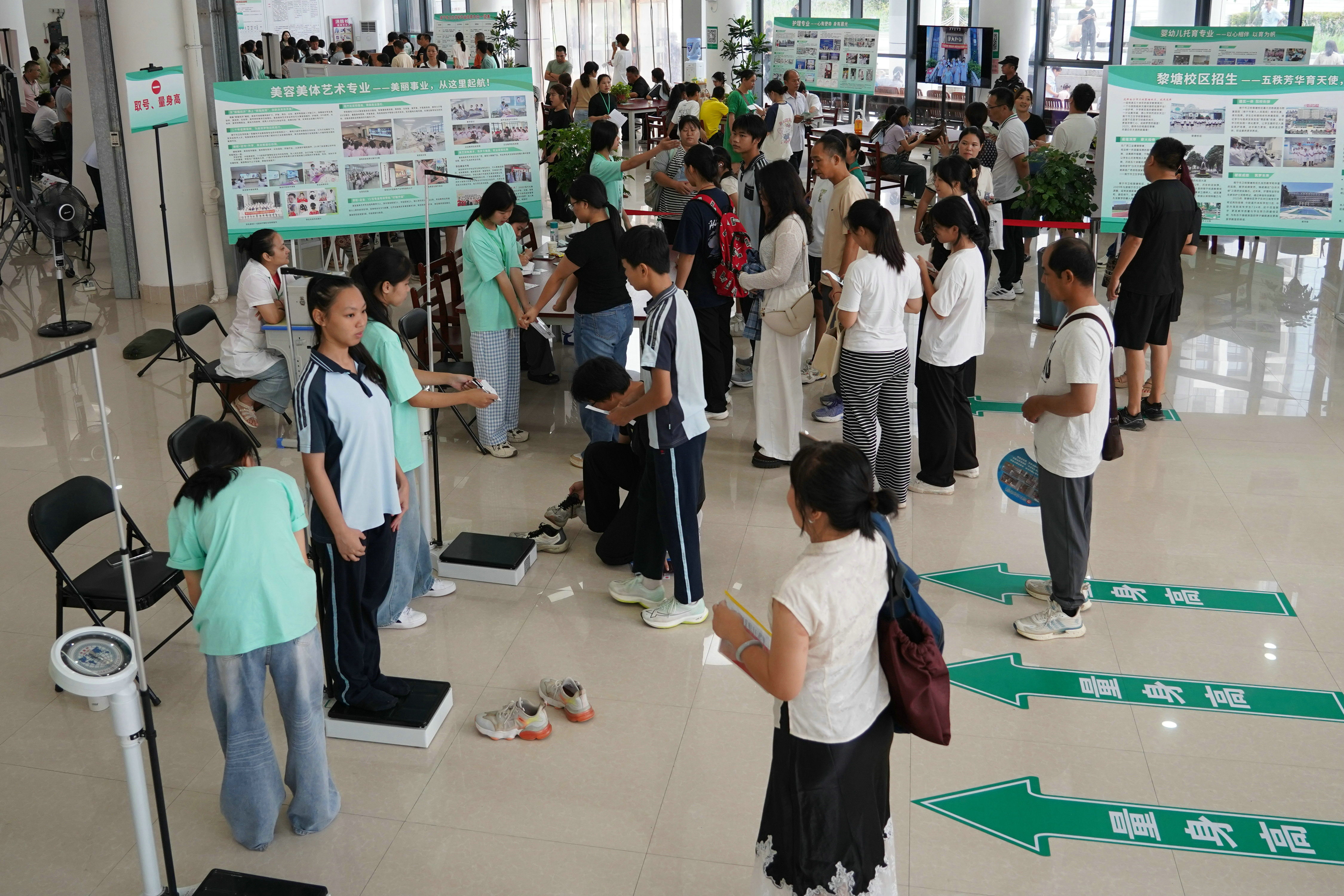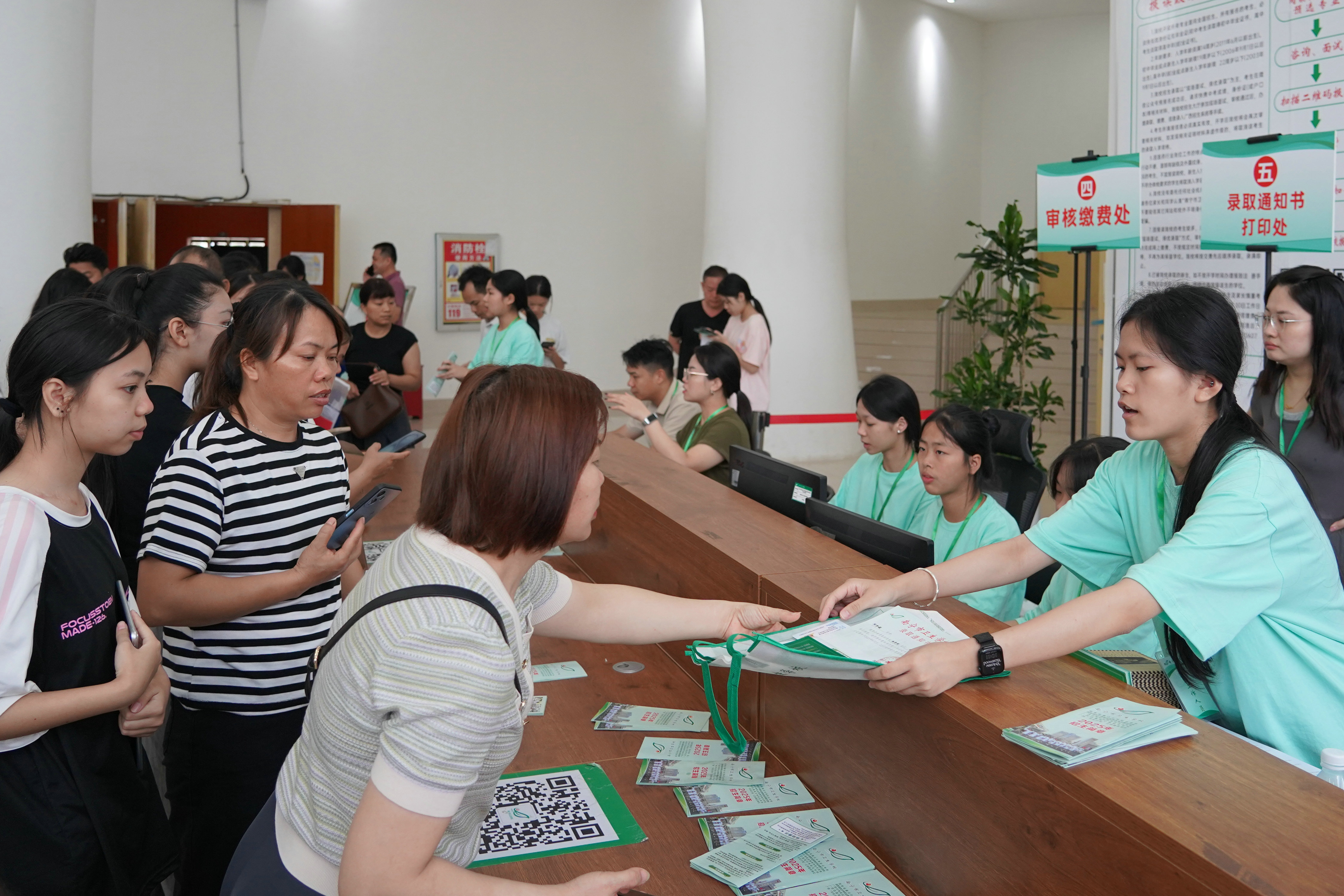2025年7月10日,南宁市卫生学校相思湖校区与黎塘校区同步启动2025年新生录取工作。随着南宁市中考成绩公布,众多考生及家长早早来到学校,招生现场人头攒动,气氛热烈,报名工作井然有序。