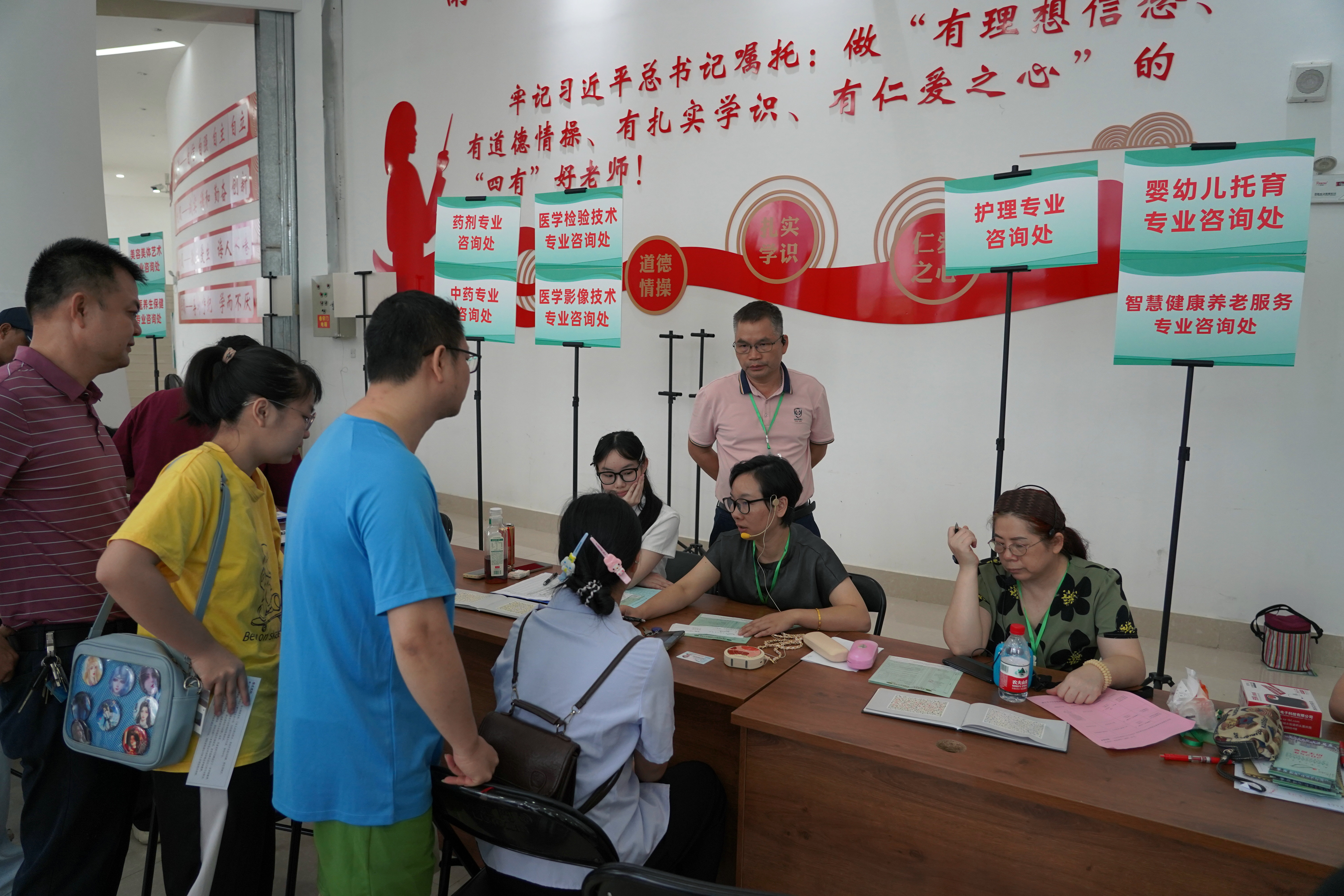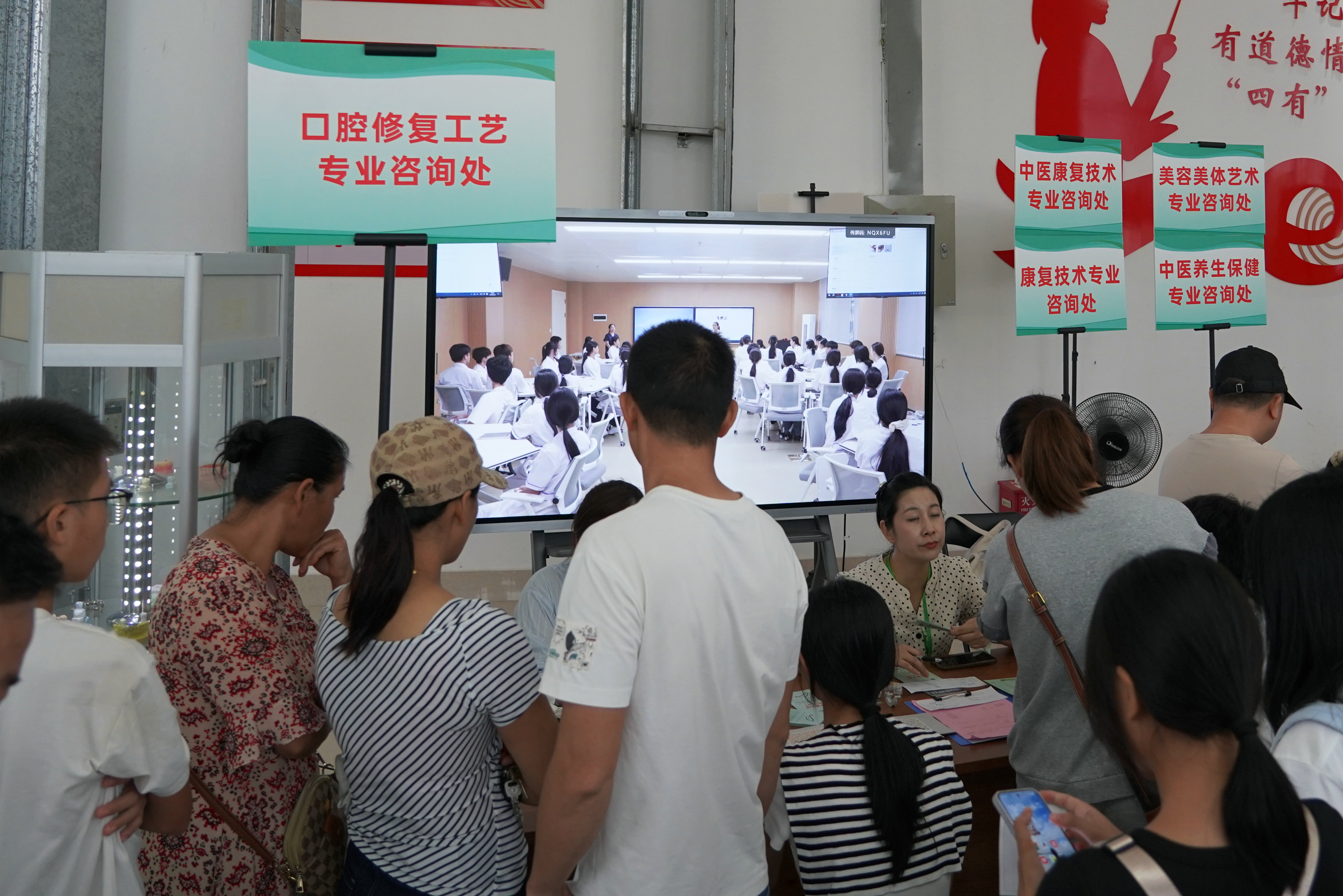 学校开放空调大礼堂,提供清凉饮品,并安排志愿者全程引导,为考生及家长营造舒适的报名环境。家长李女士表示:“学校的校园环境优美,老师耐心专业,孩子顺利被护理专业录取,我们非常满意!”