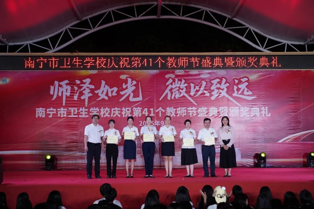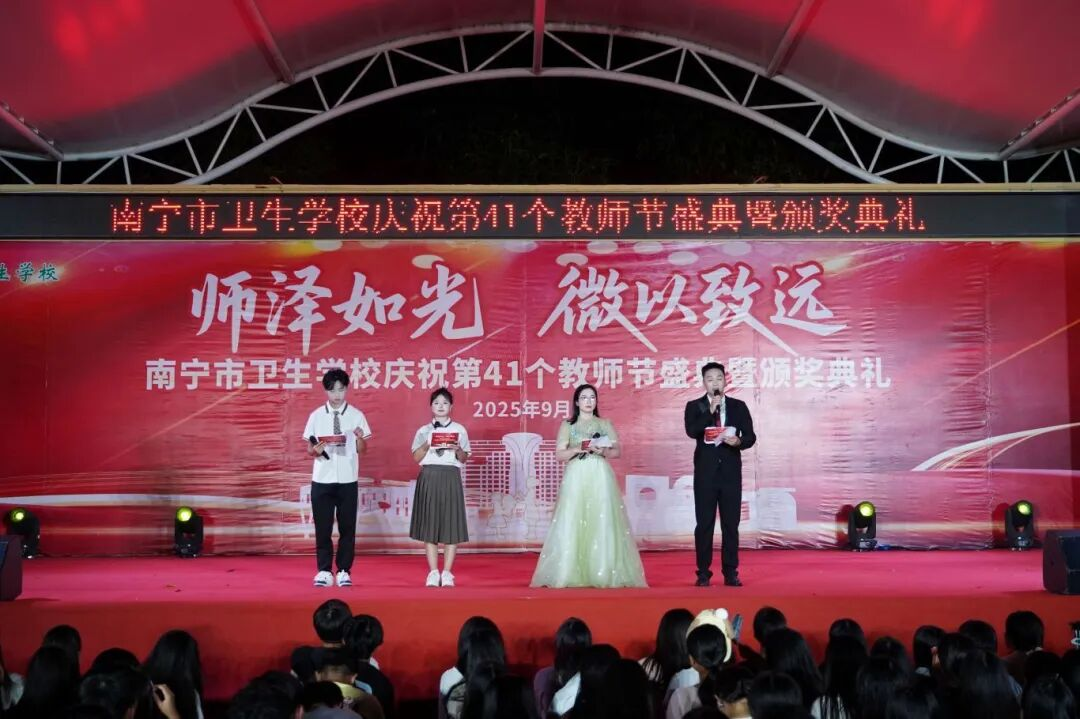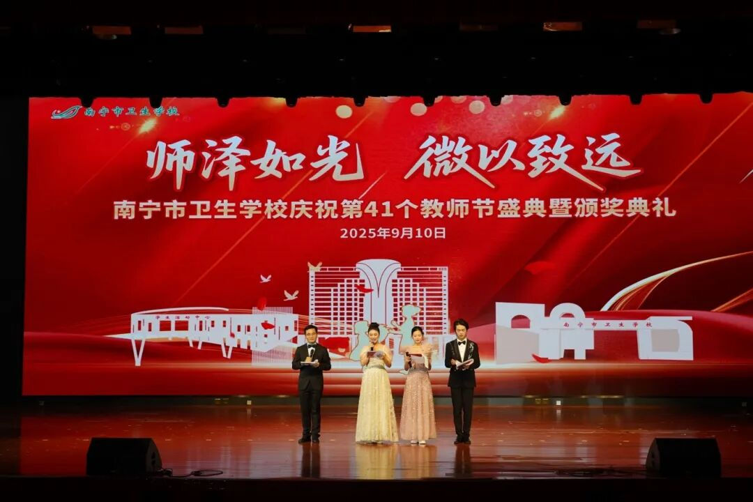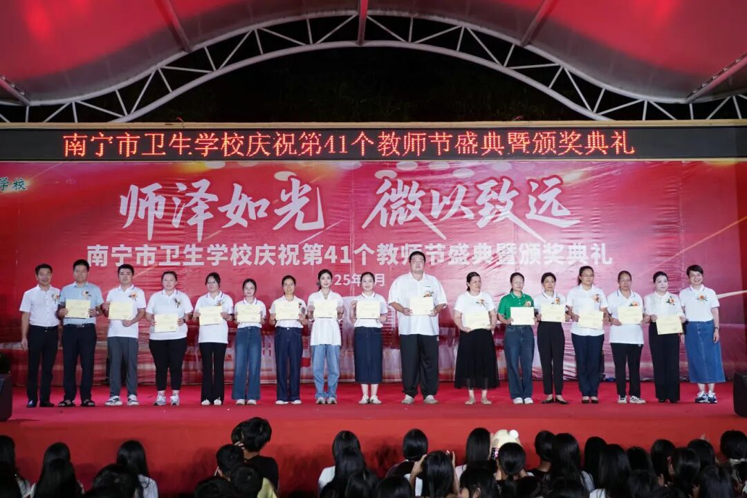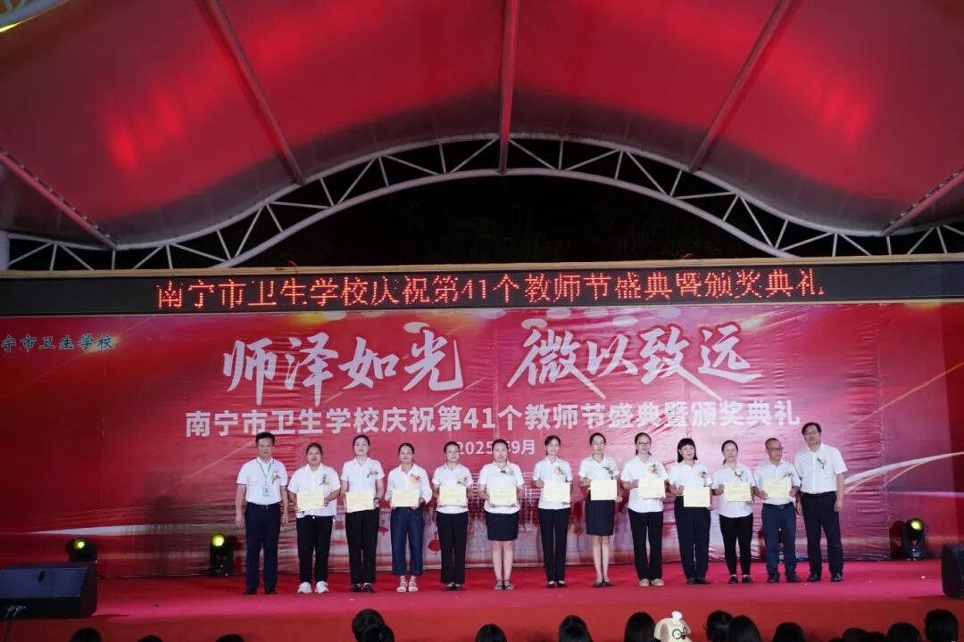 2025年9月10日至11日,南宁市卫生学校分别在相思湖校区和黎塘校区举行庆祝第41个教师节盛典暨颁奖典礼。南宁市卫生健康委员会党组成员、副主任曾嫄艺,教学医院、合作企业领导嘉宾及学校全体师生齐聚一堂,共同庆祝属于教育工作者的崇高节日。