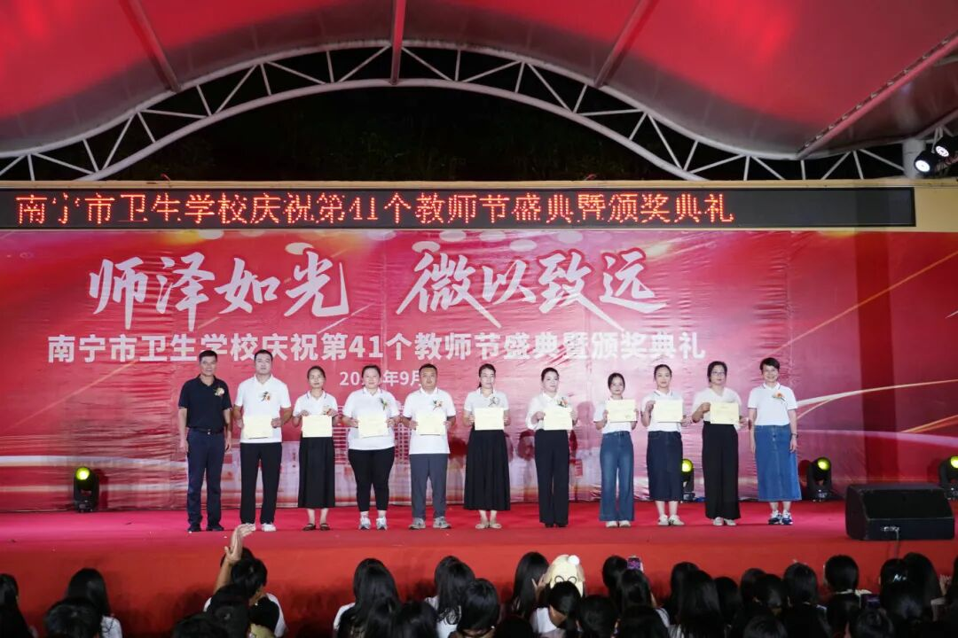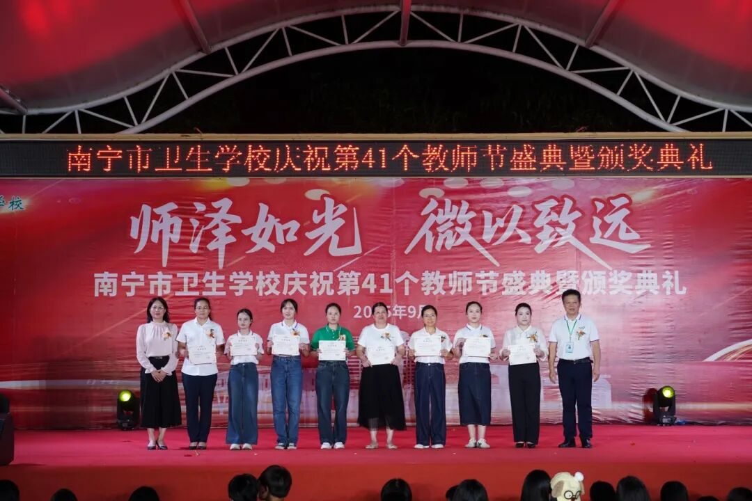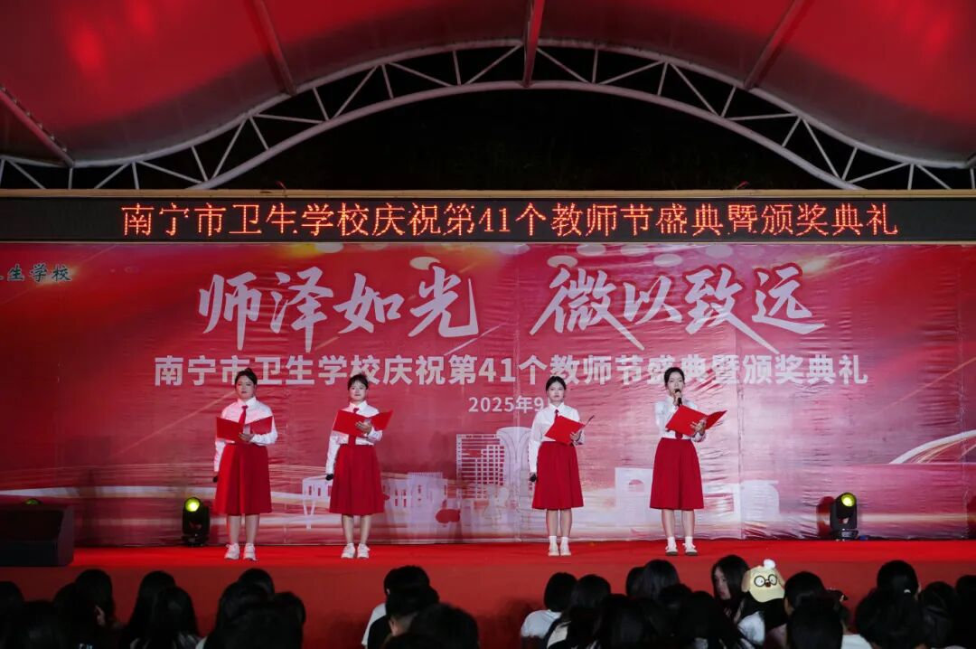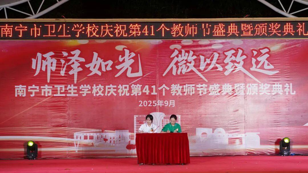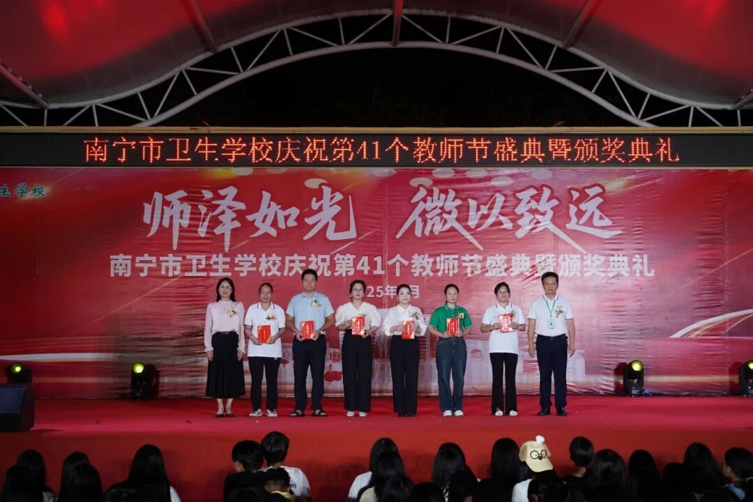 2025年9月10日至11日,南宁市卫生学校分别在相思湖校区和黎塘校区举行庆祝第41个教师节盛典暨颁奖典礼。南宁市卫生健康委员会党组成员、副主任曾嫄艺,教学医院、合作企业领导嘉宾及学校全体师生齐聚一堂,共同庆祝属于教育工作者的崇高节日。