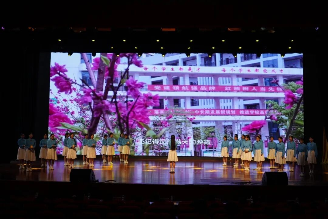 演出尾声,两校区分别以合唱《你从光中走来》和师生互动节目《送你一朵小红花》温情收尾。在悠扬旋律与互动暖意中,将对教师的崇高敬意与感恩之情推向高潮。