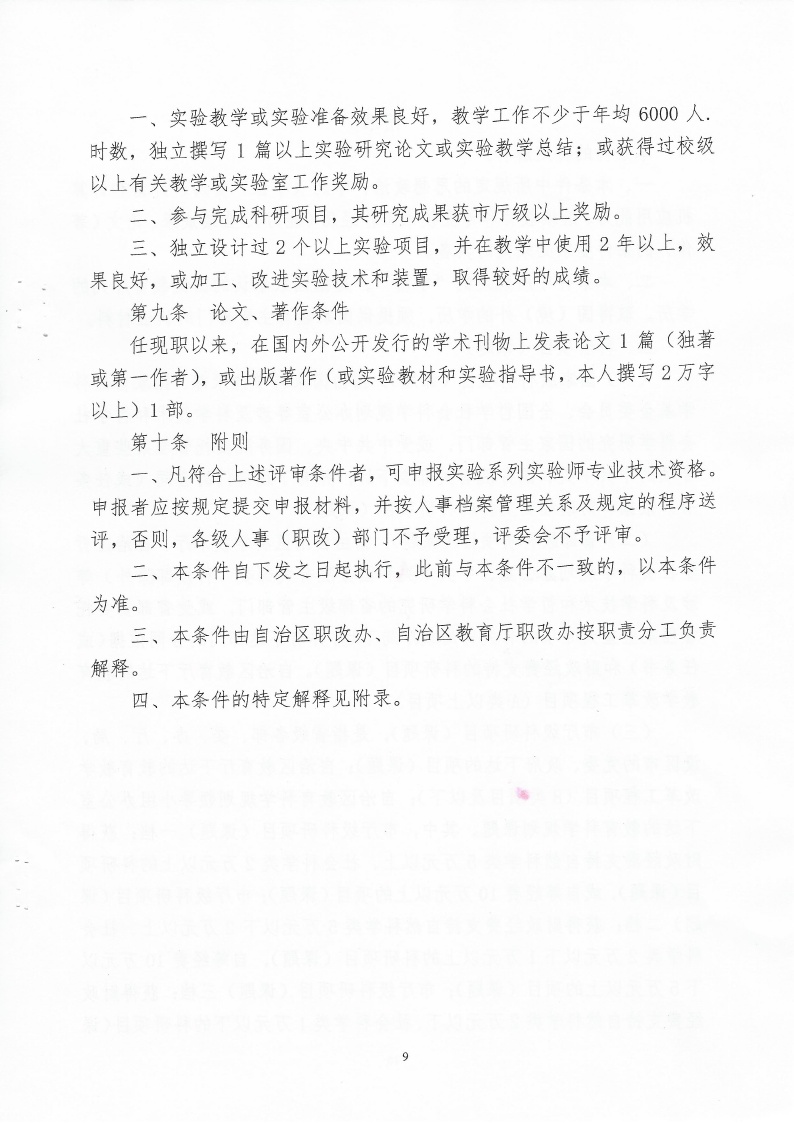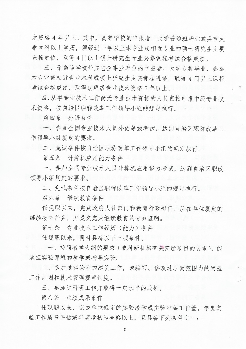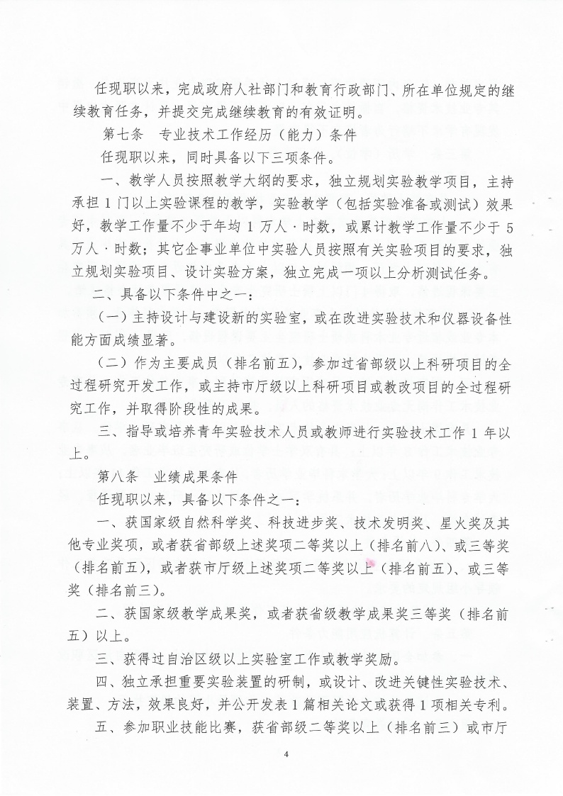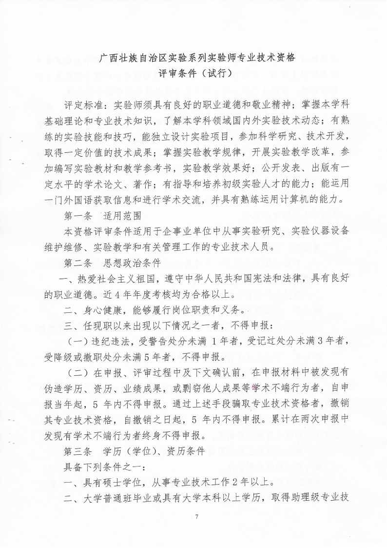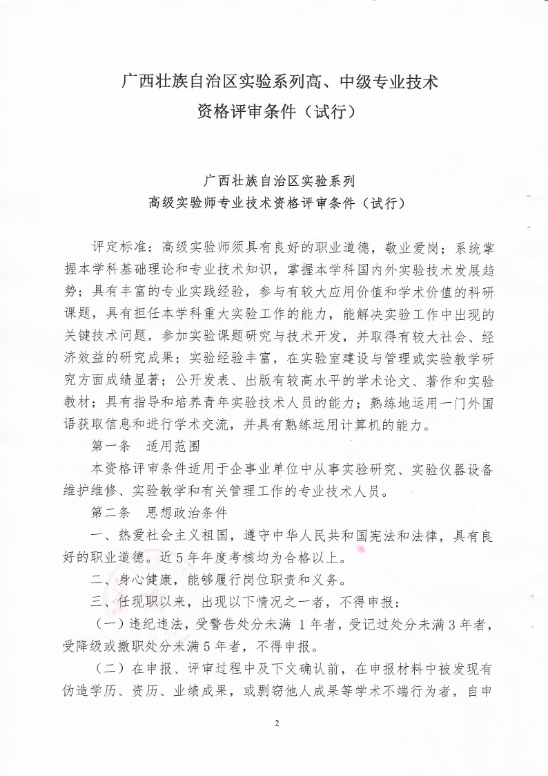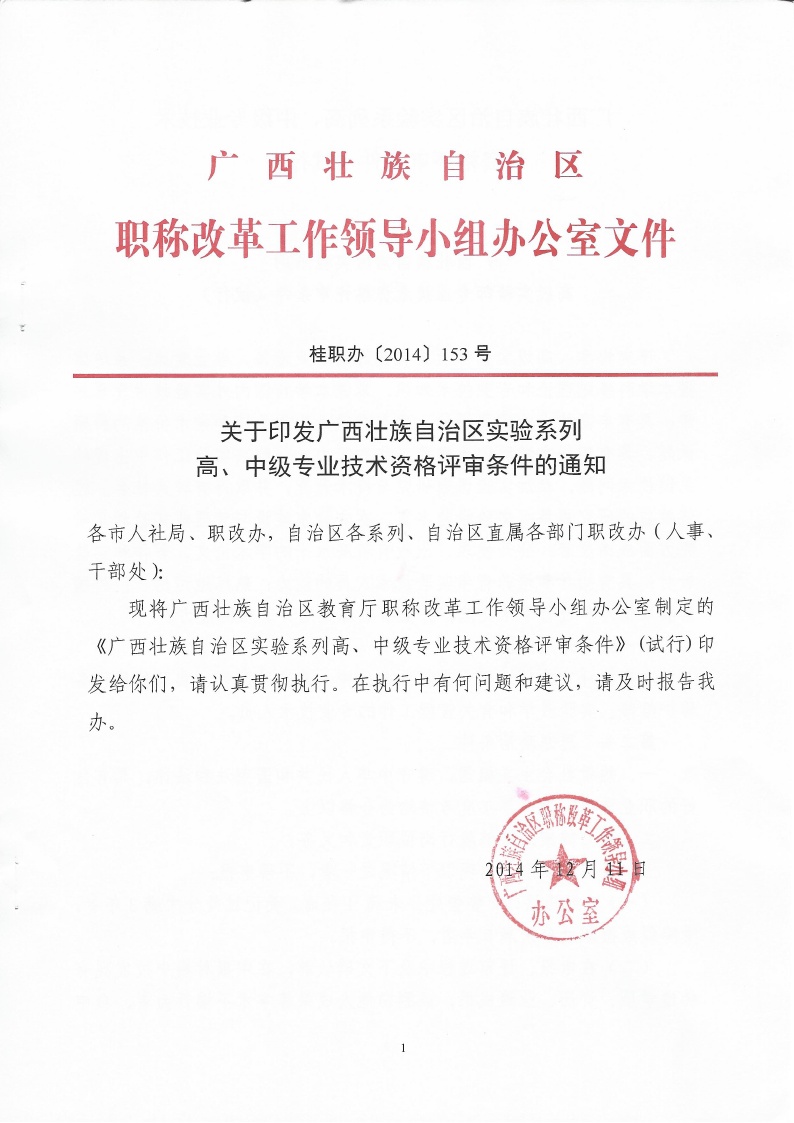 桂职办〔2014〕153号-关于印发广西壮族自治区实验系列高、中级专业技术资格评审条件的通知